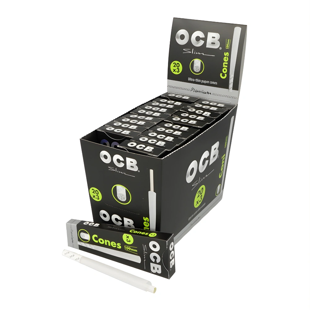 OCB grundades i Frankrike 1918 och är idag en av världens mest populära tillverkare av rullpapper. OCB Premium Slim-cones med filter och pack-pinne. Dessa förrullade cones är gjorda av extra tunt Premium-papper som brinner extra långsamt. Alla OCB-papper är veganvänliga, GMO-fria och tillverkade med miljömedveten precision.